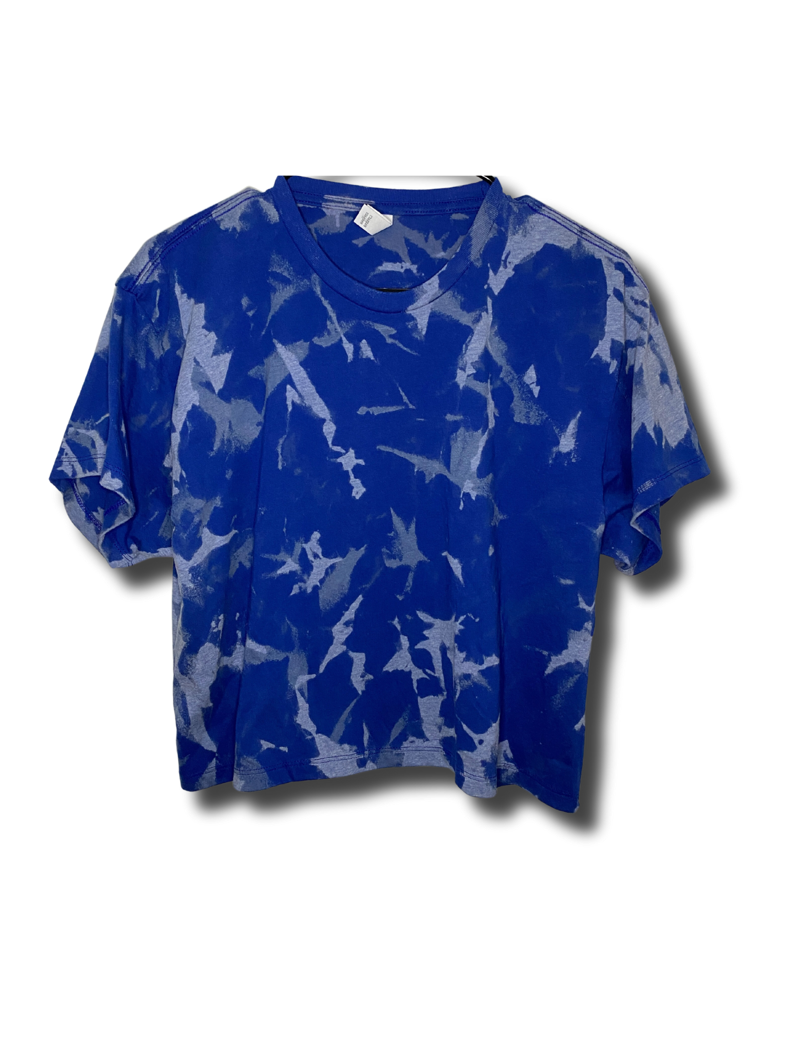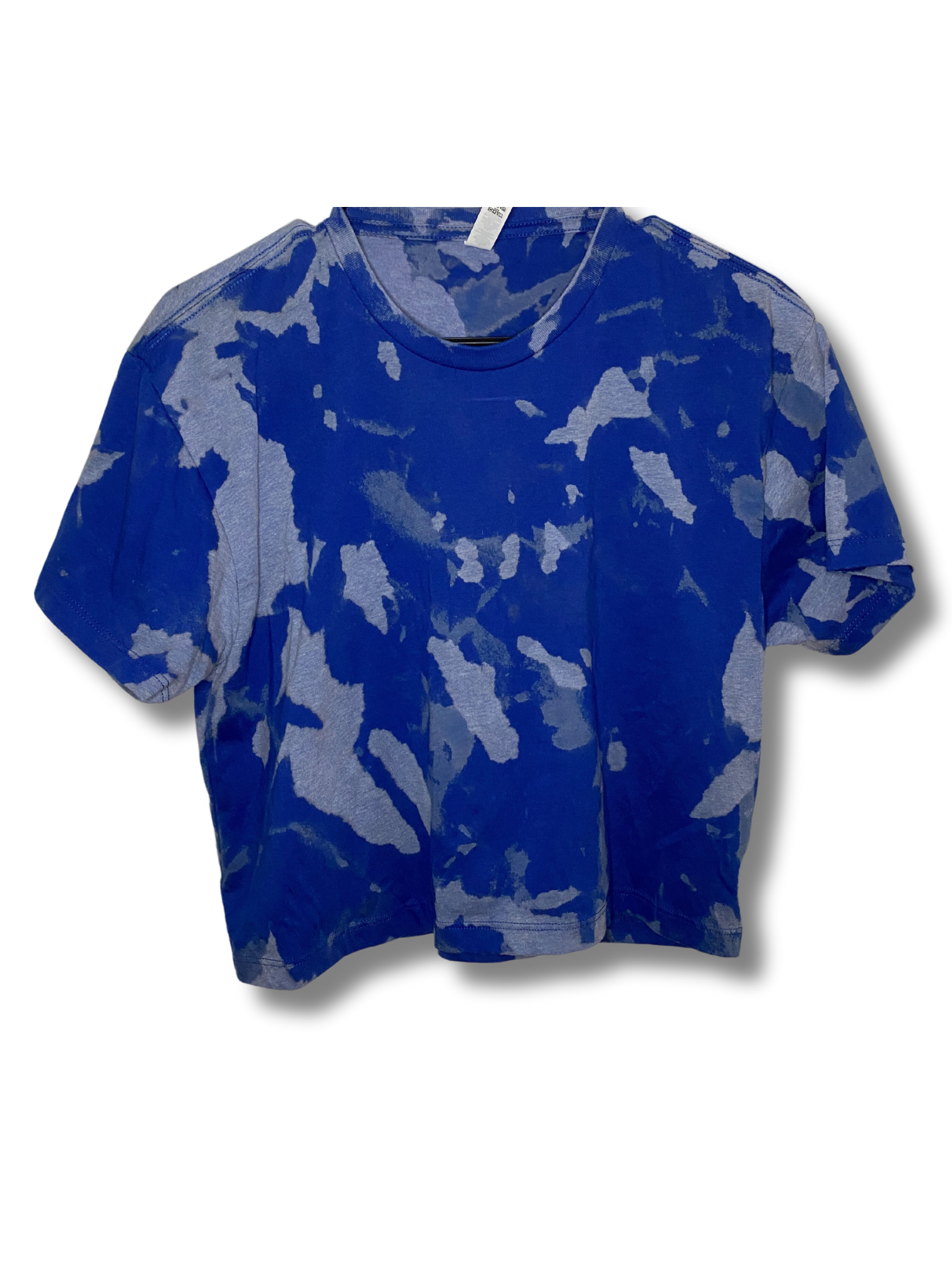 The 1989 Blue Acid Wash Crops are a royal blue blend of sky tones. The shirts are a super soft cotton/poly blend with finished sleeves and hem.