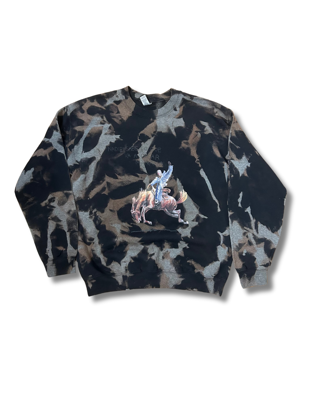 This sweatshirt was thrifted and enhanced with an acid wash embellishment! One of a kind!