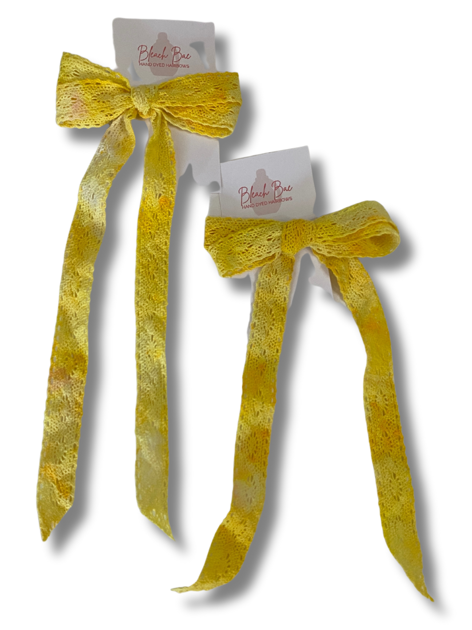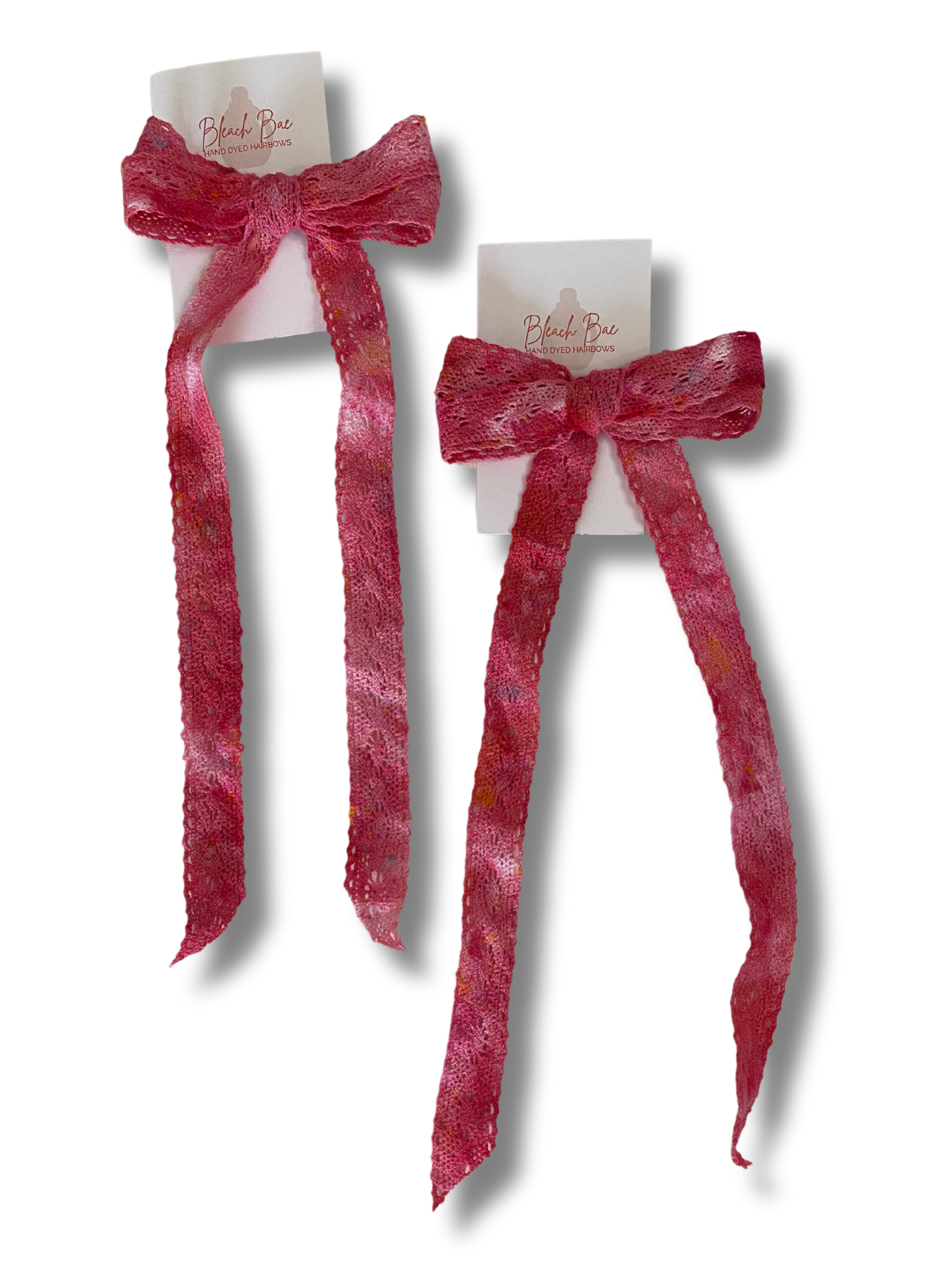 Accessorize in style with hand dyed and tied hair bows. Each bow comes on a lightweight alligator style clip.