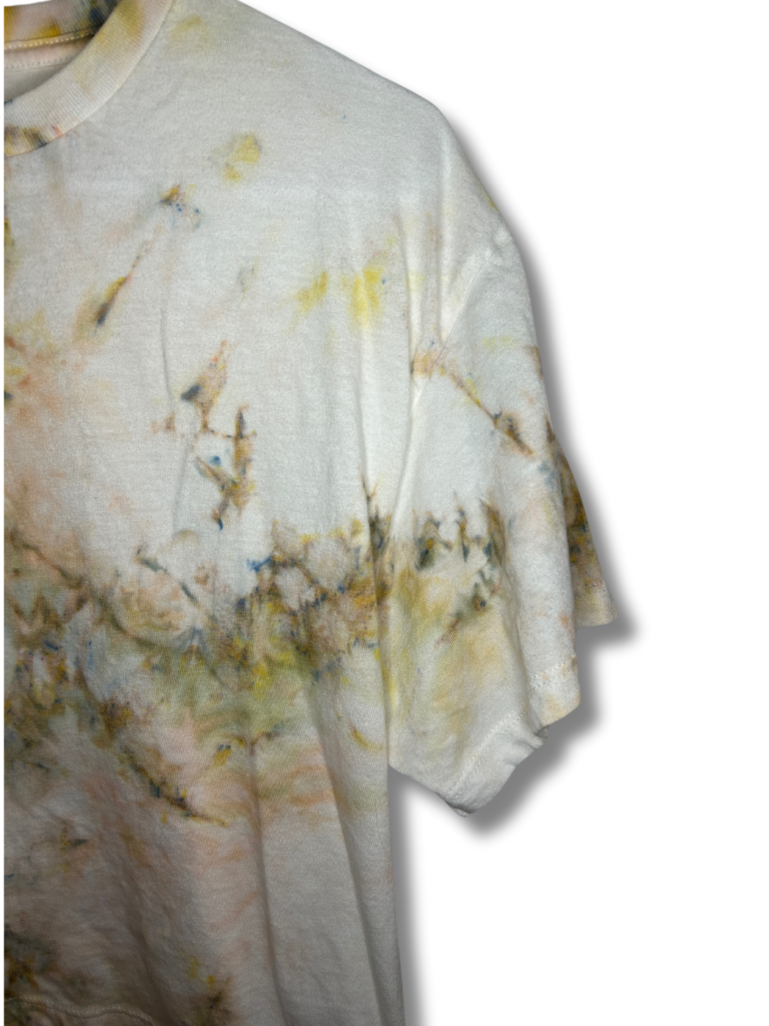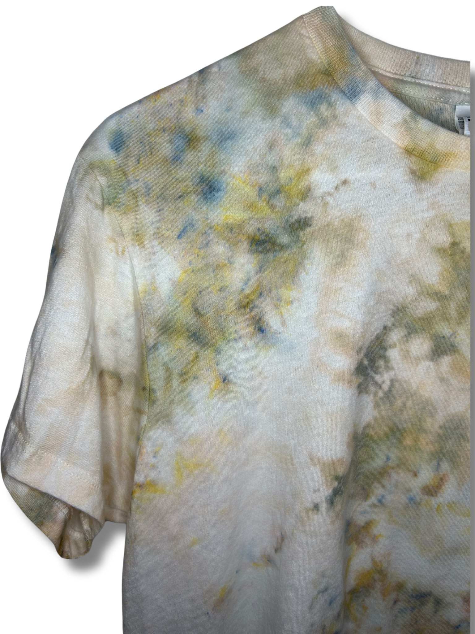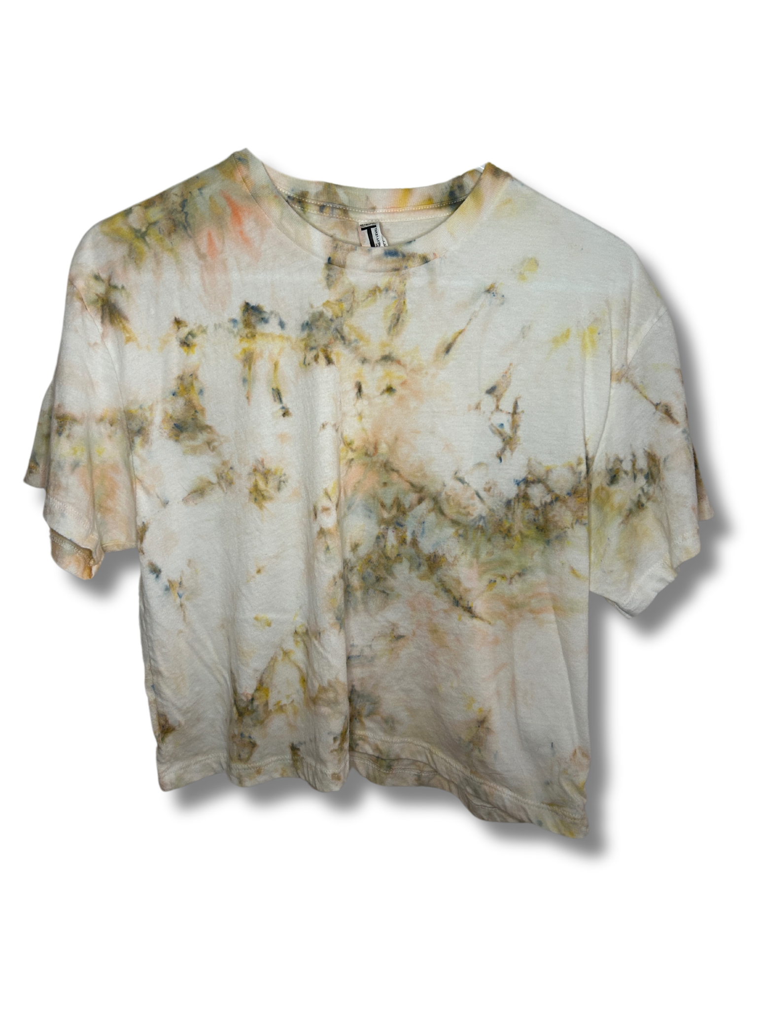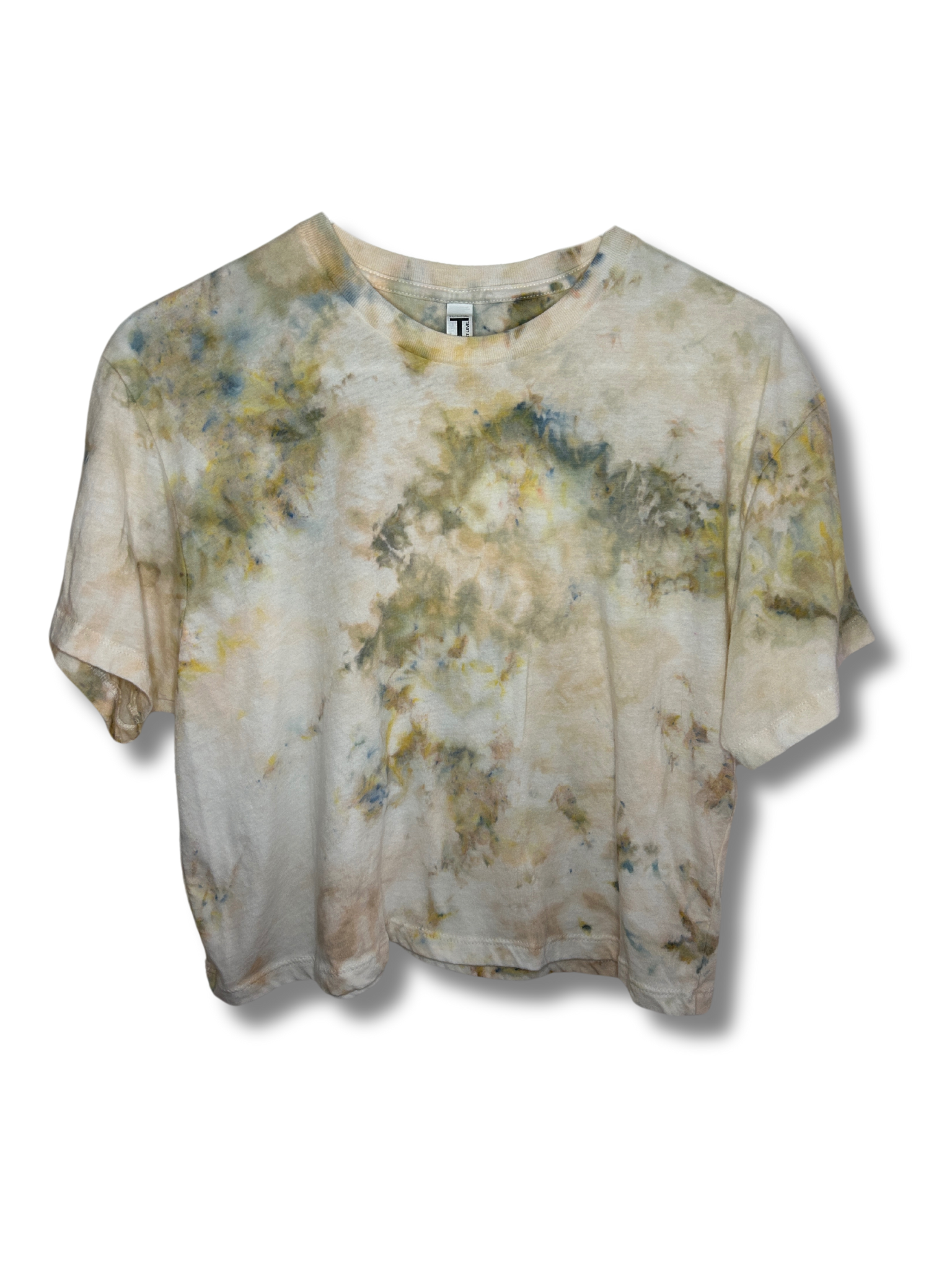This is a small batch event and can never be perfectly replicated. These crops were all ice dyed together using the same colors but each turned out a little differently and beautifully unique.
