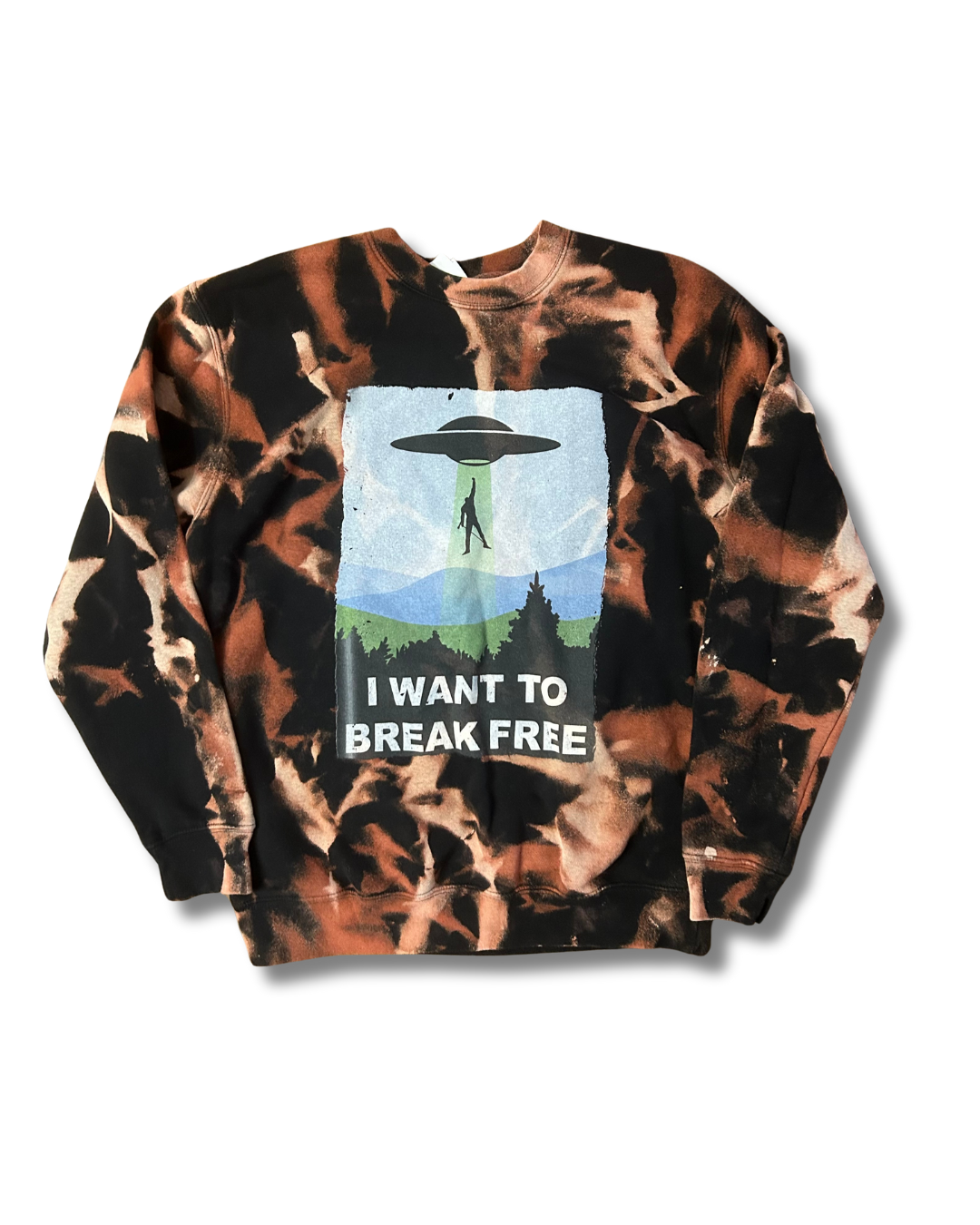 This sweatshirt was thrifted and enhanced with an acid wash embellishment! One of a kind!