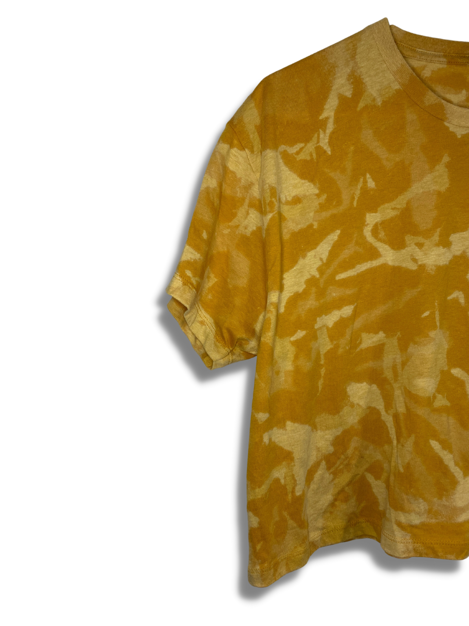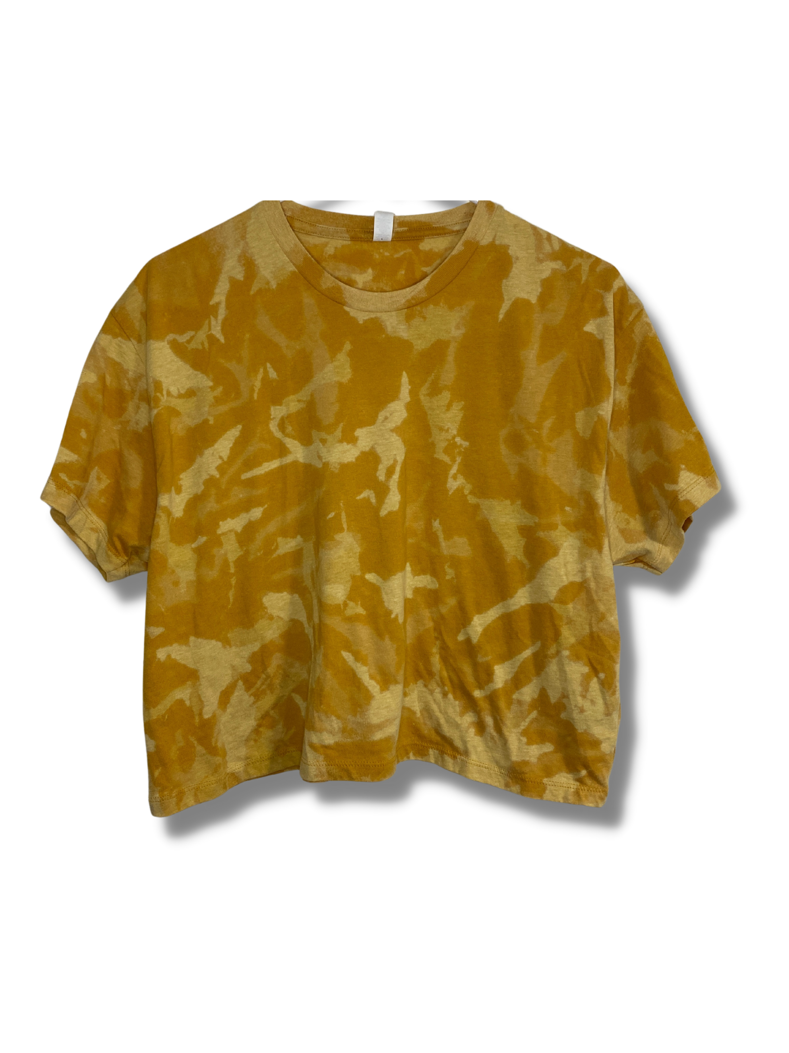 The gold rush Acid Wash Crops are the perfect shade of mustard golden yellow. The shirts are a super soft cotton/poly blend with finished sleeves and hem.