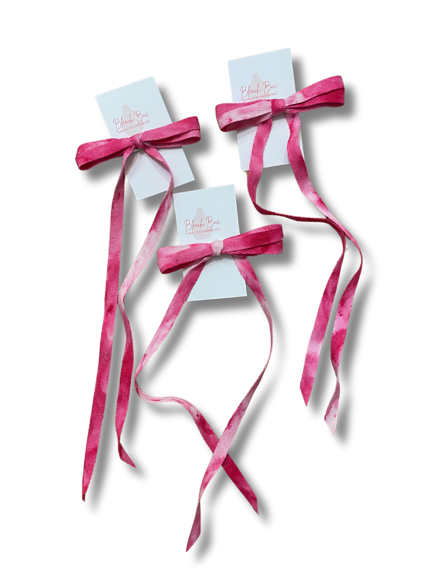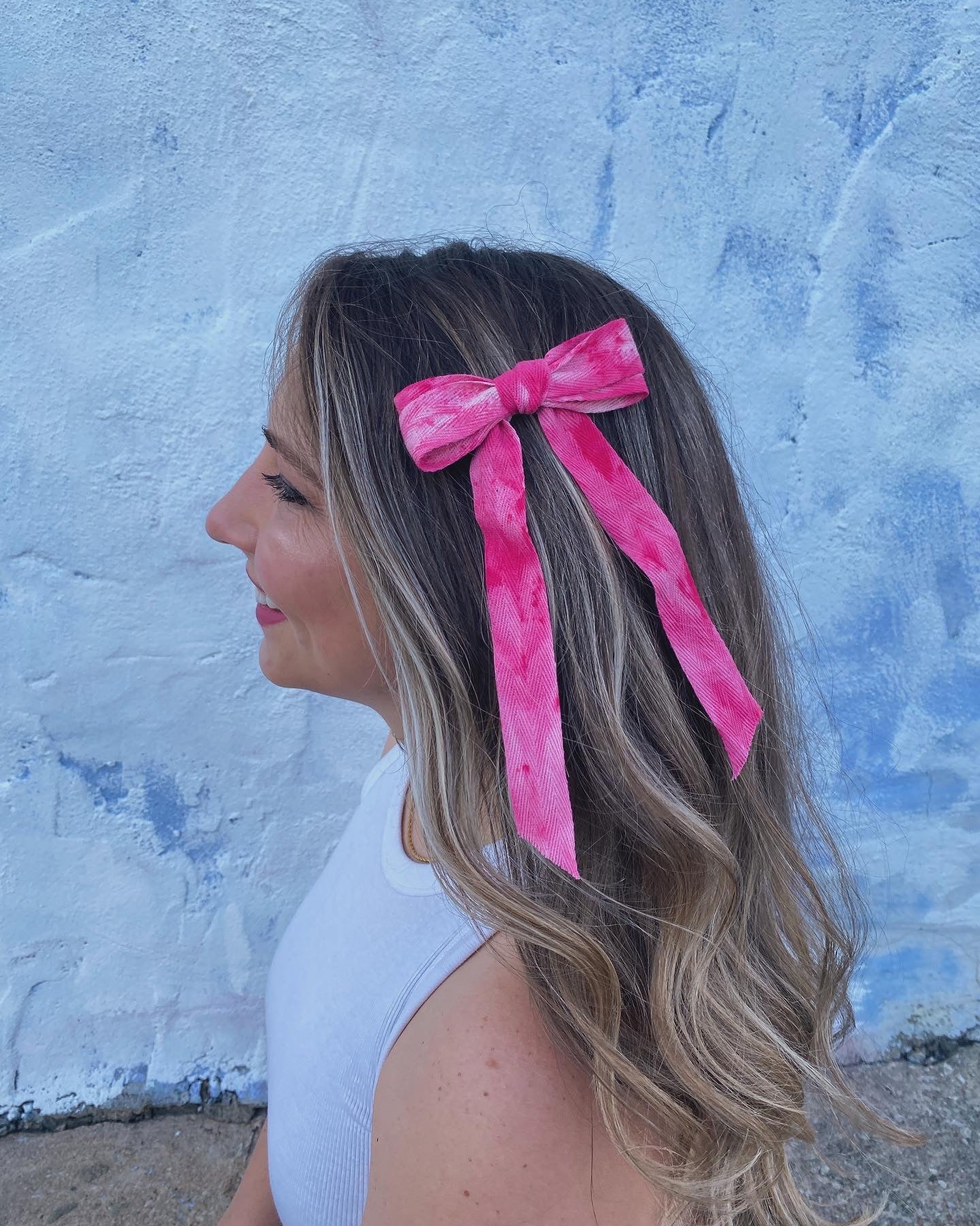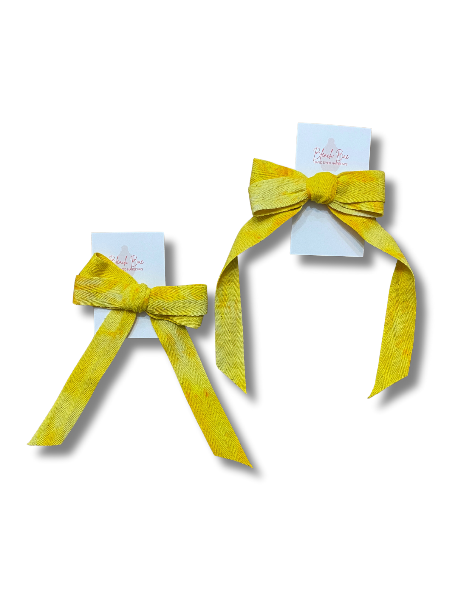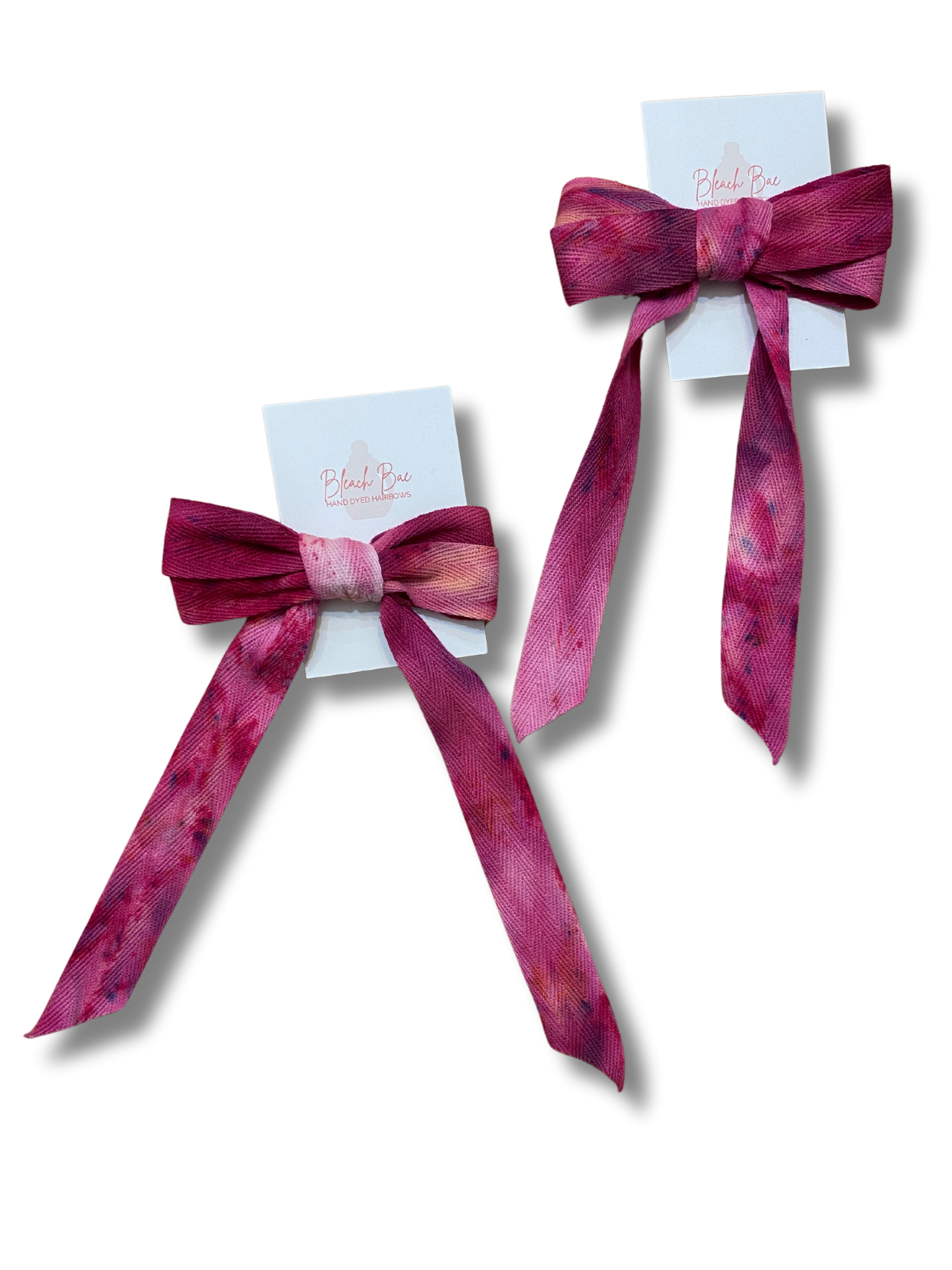 Accessorize in style with hand dyed and tied hair bows. Each bow comes on a lightweight alligator style clip.