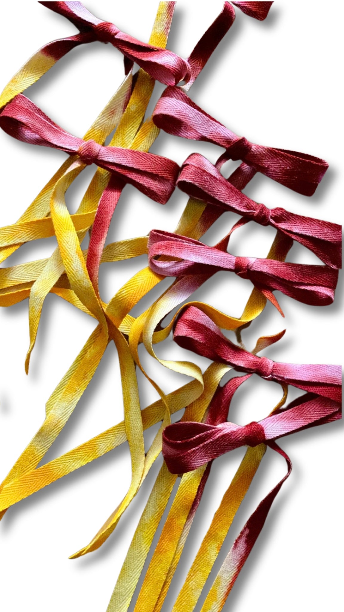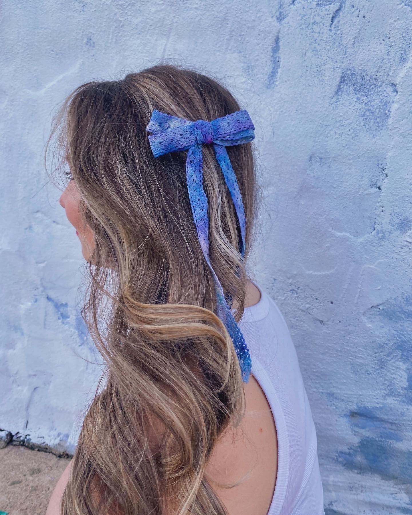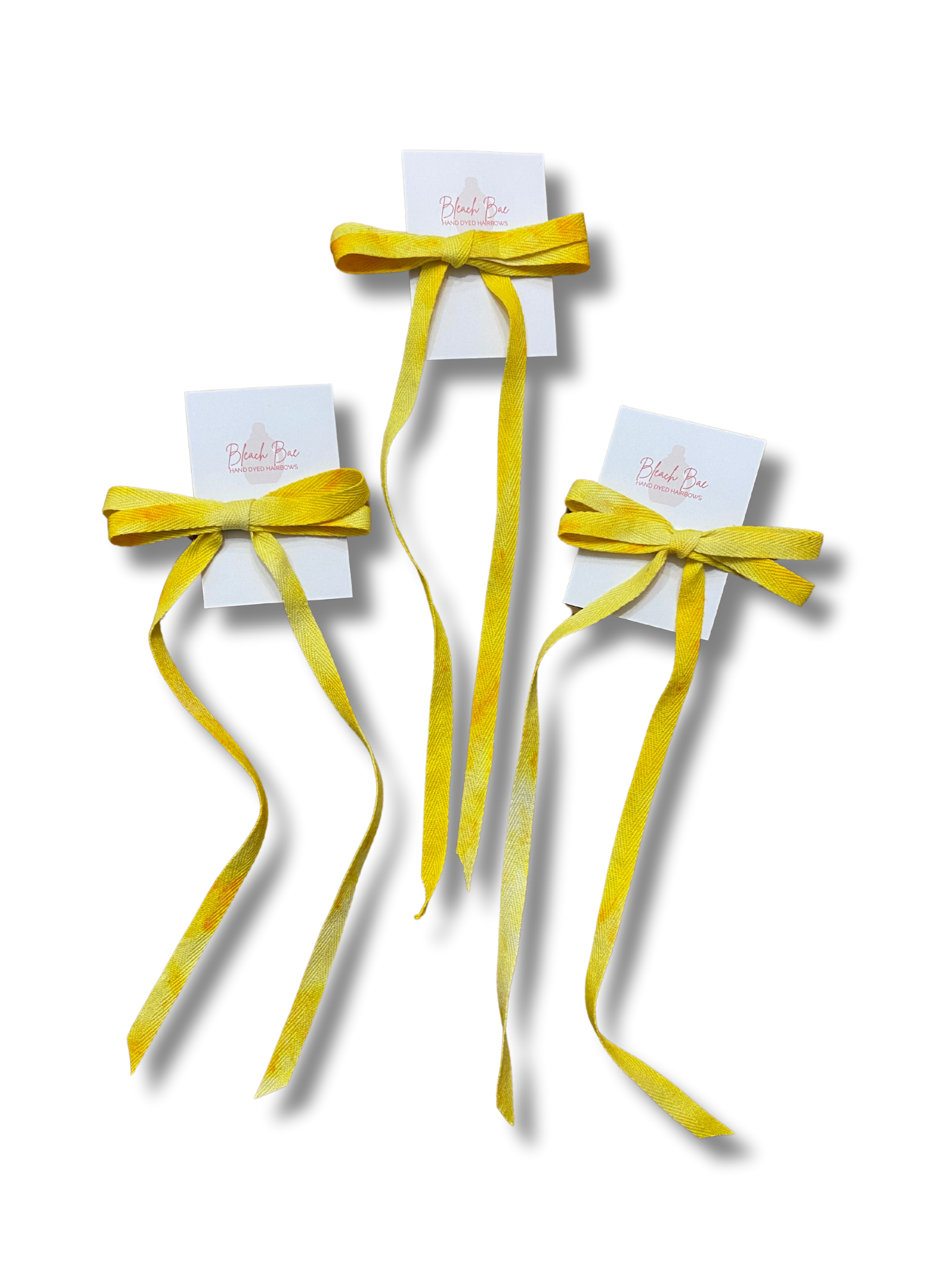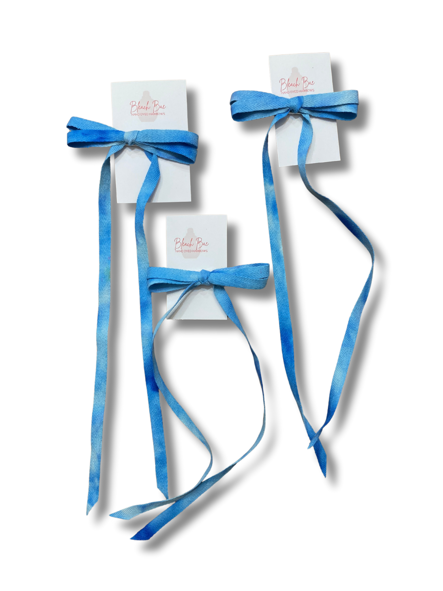 Accessorize in style with hand dyed and tied hair bows. Each bow comes on a lightweight alligator style clip.