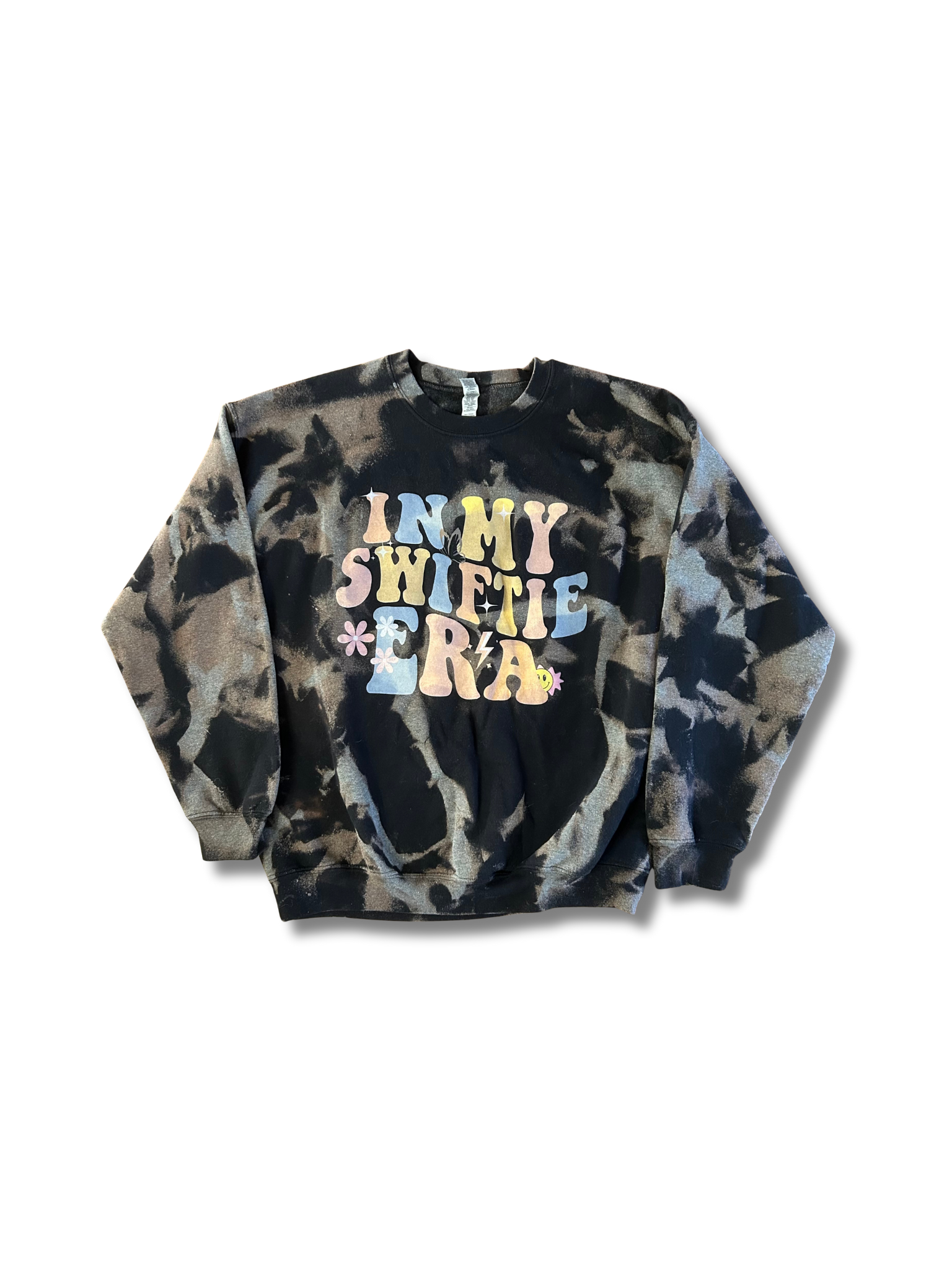 This sweatshirt was thrifted and enhanced with an acid wash embellishment! One of a kind!