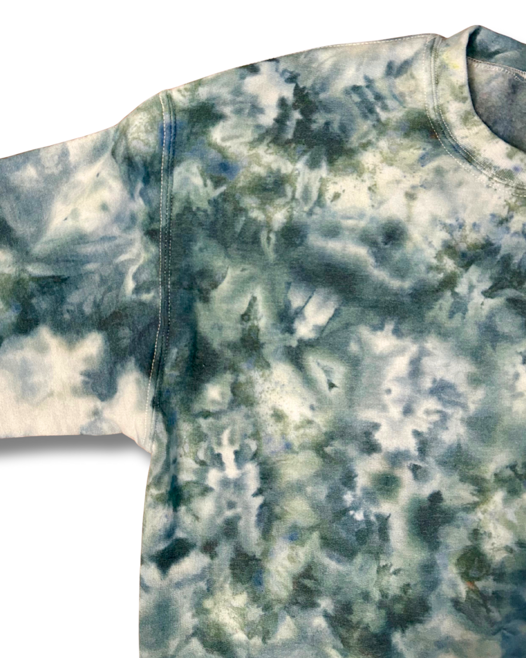 This is a small batch event and can never be perfectly replicated. These crews were all ice dyed together using the same colors but each turned out a little differently and beautifully unique.