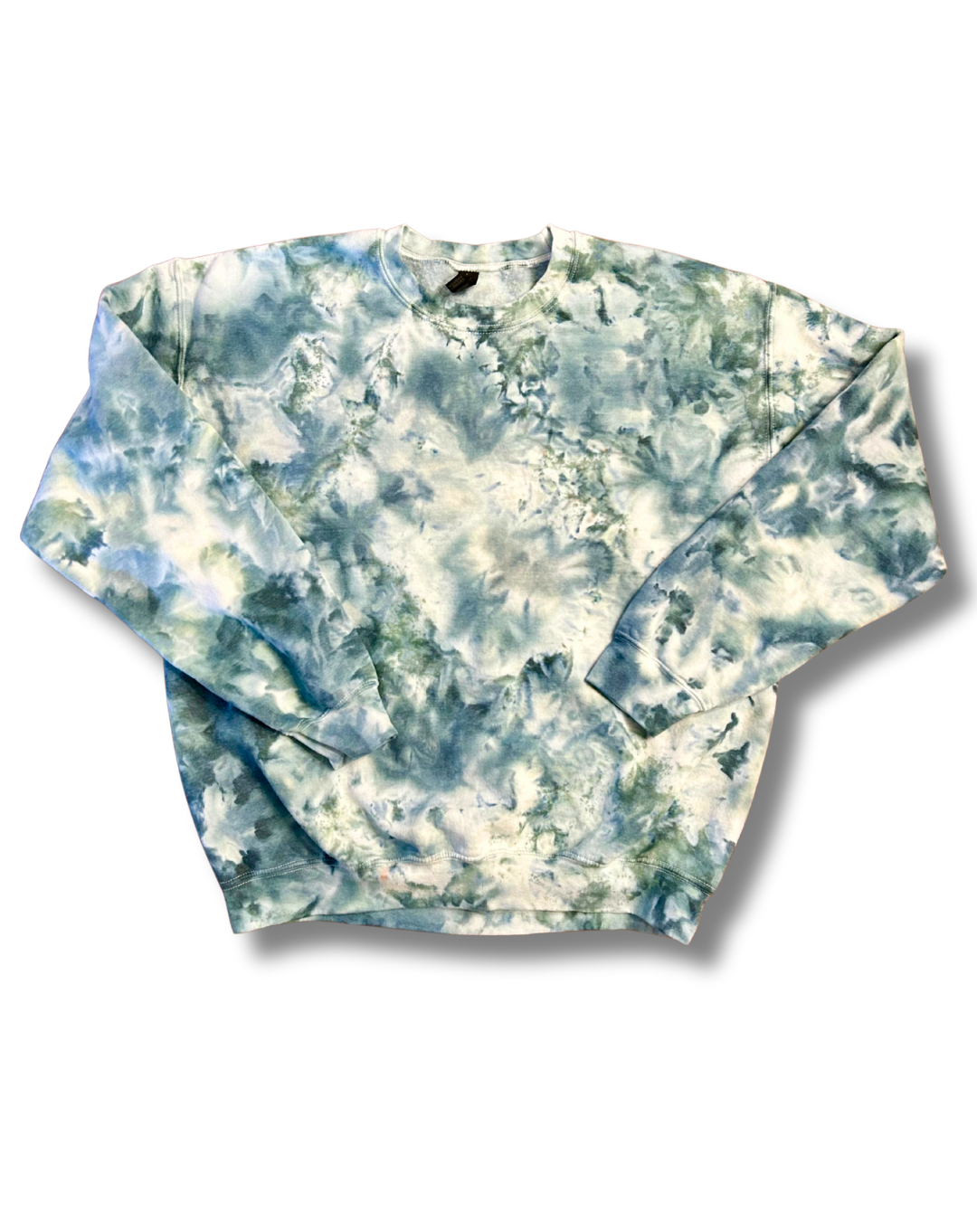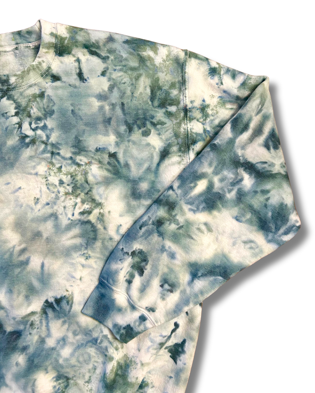 The Long Pond Ice Dye Crew is a a one-of-a-kind, hand-dyed sweatshirt inspired by foggy mornings, lake glass tones, and the calm that comes after the chaos.