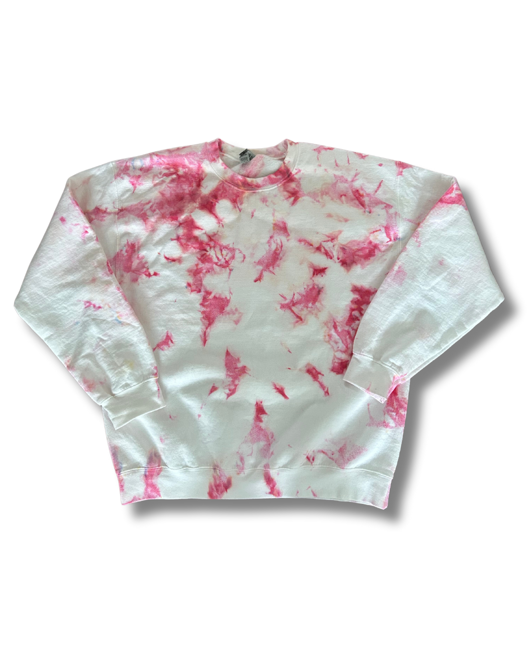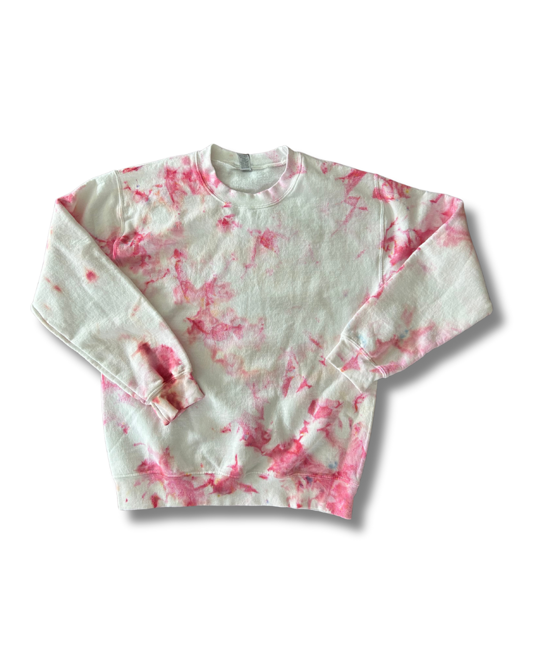 Each crew is ice dyed by hand in small batches, allowing the colors to bloom naturally across the fabric. No two are exactly alike, making every piece uniquely yours.