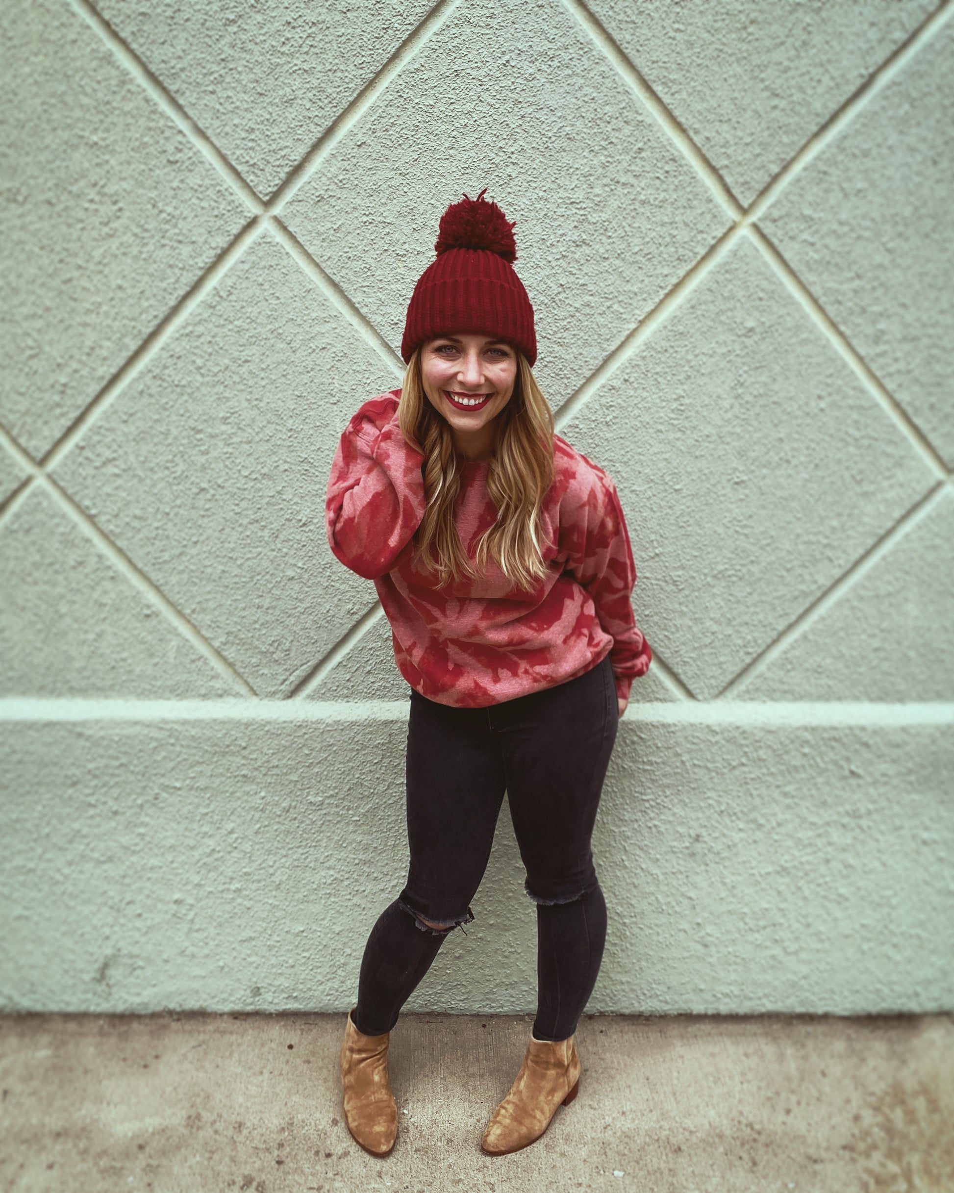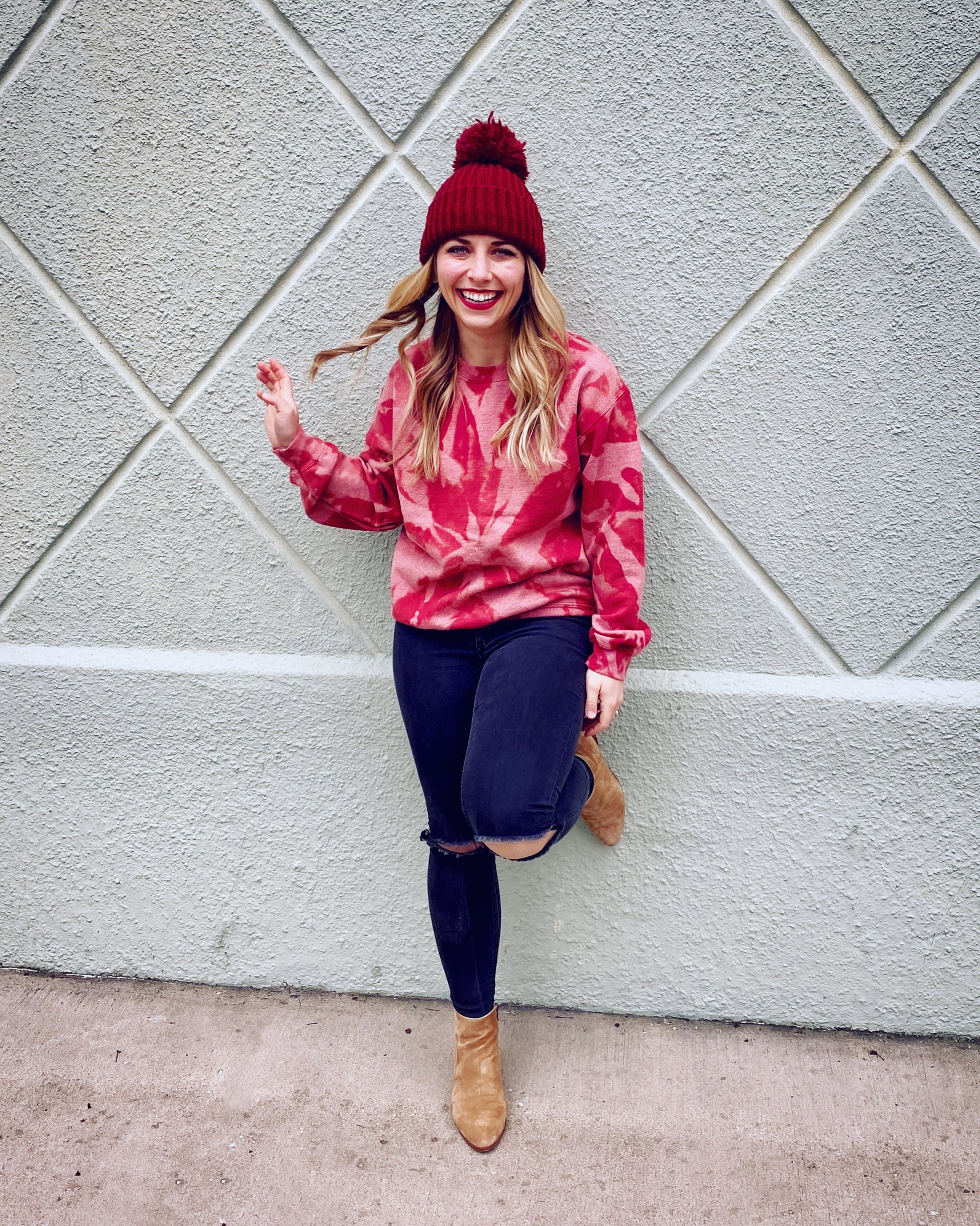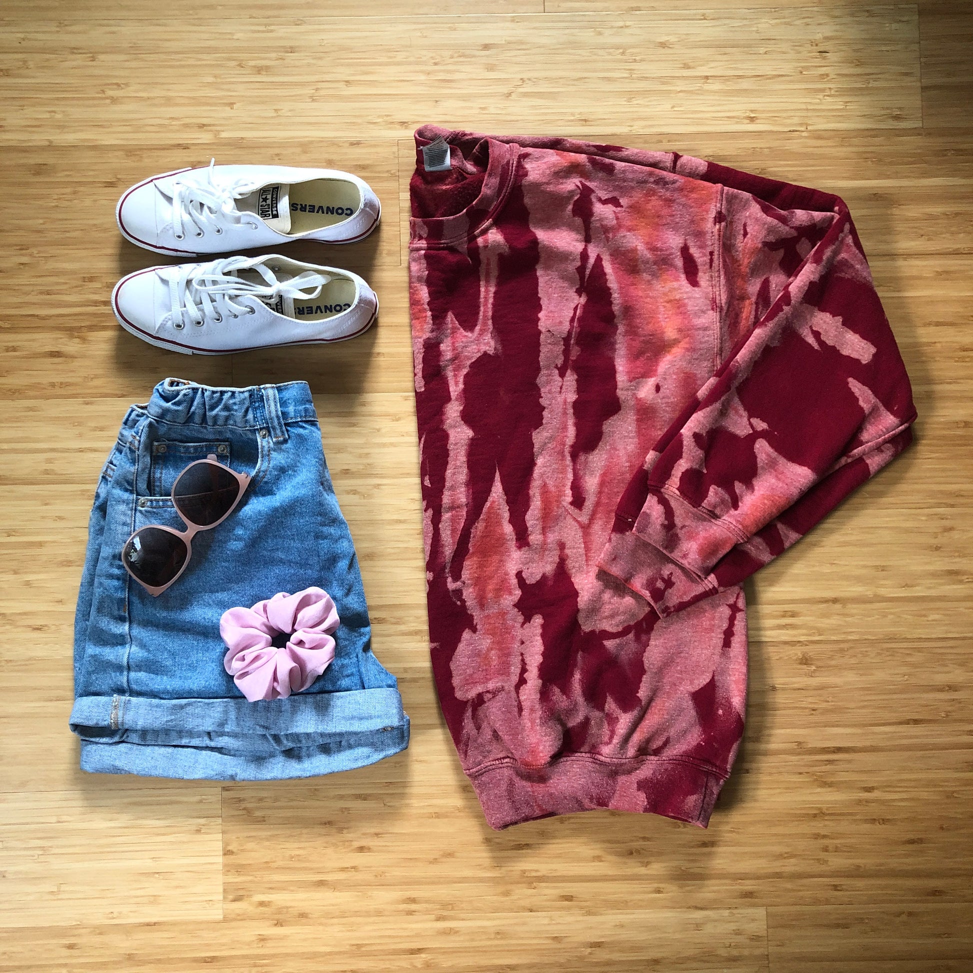 Upgrade your loungewear with this one of a kind sweatshirt in Pomegranate. Your piece will be similar to items pictured in the listing, but it will not be exact, that’s the beauty of acid wash magic! Pomegranate is a cozy vintage red.