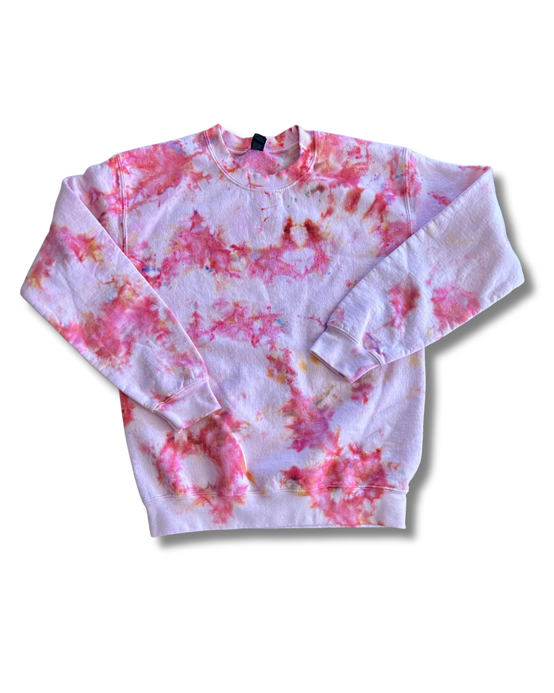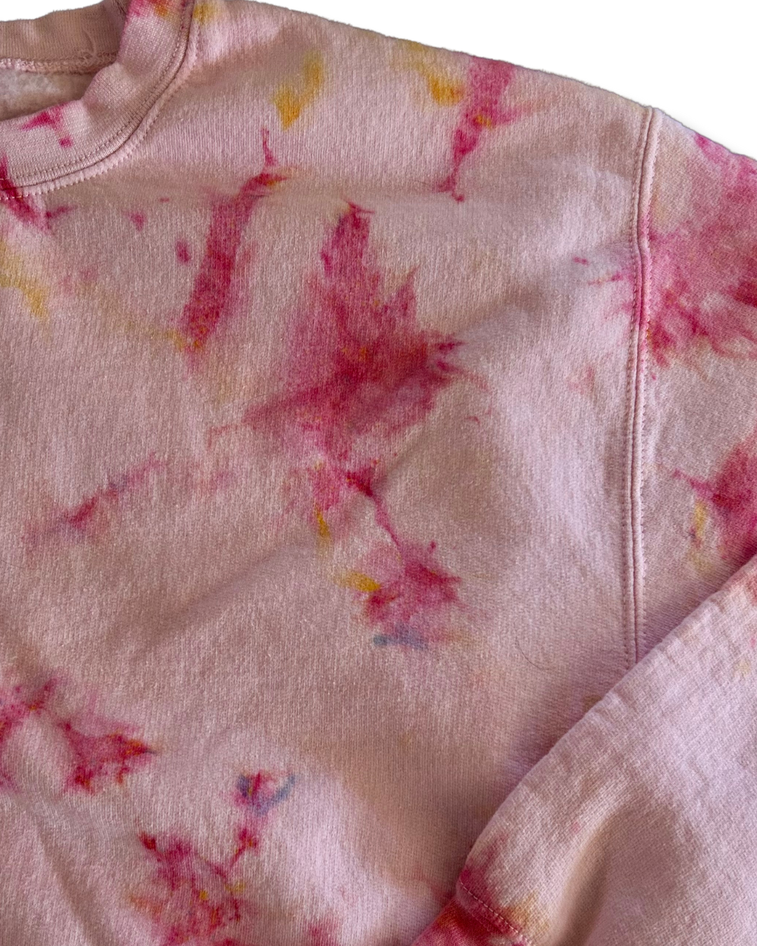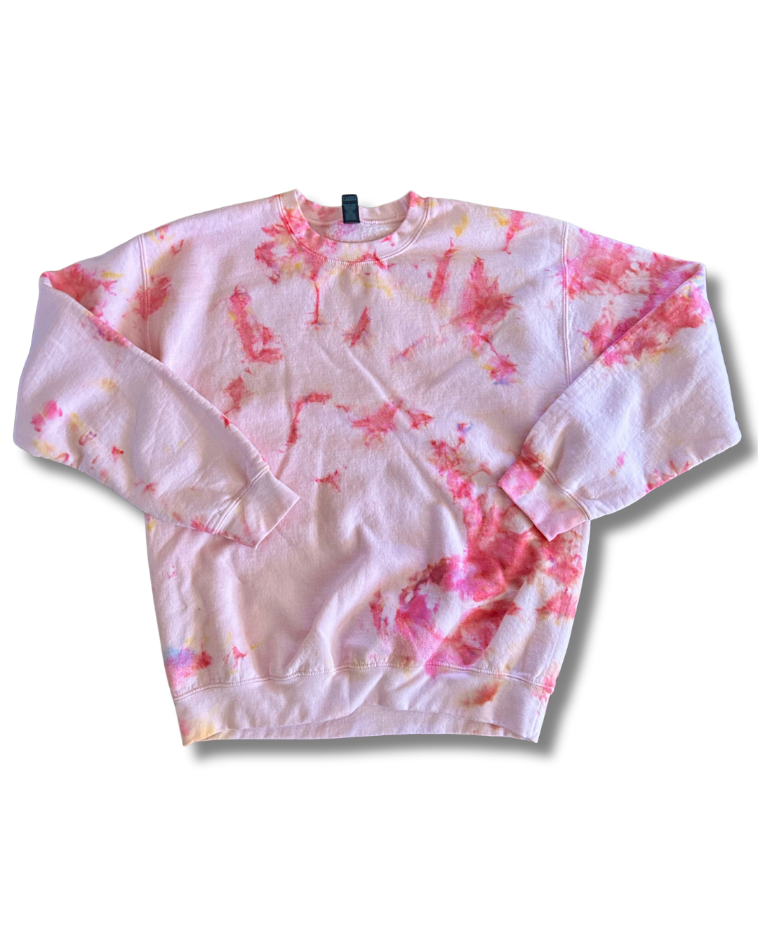 The Sparks Fly Ice Dye Crew is a magical explosion of bubble gum pink, dyed on a pink crew.