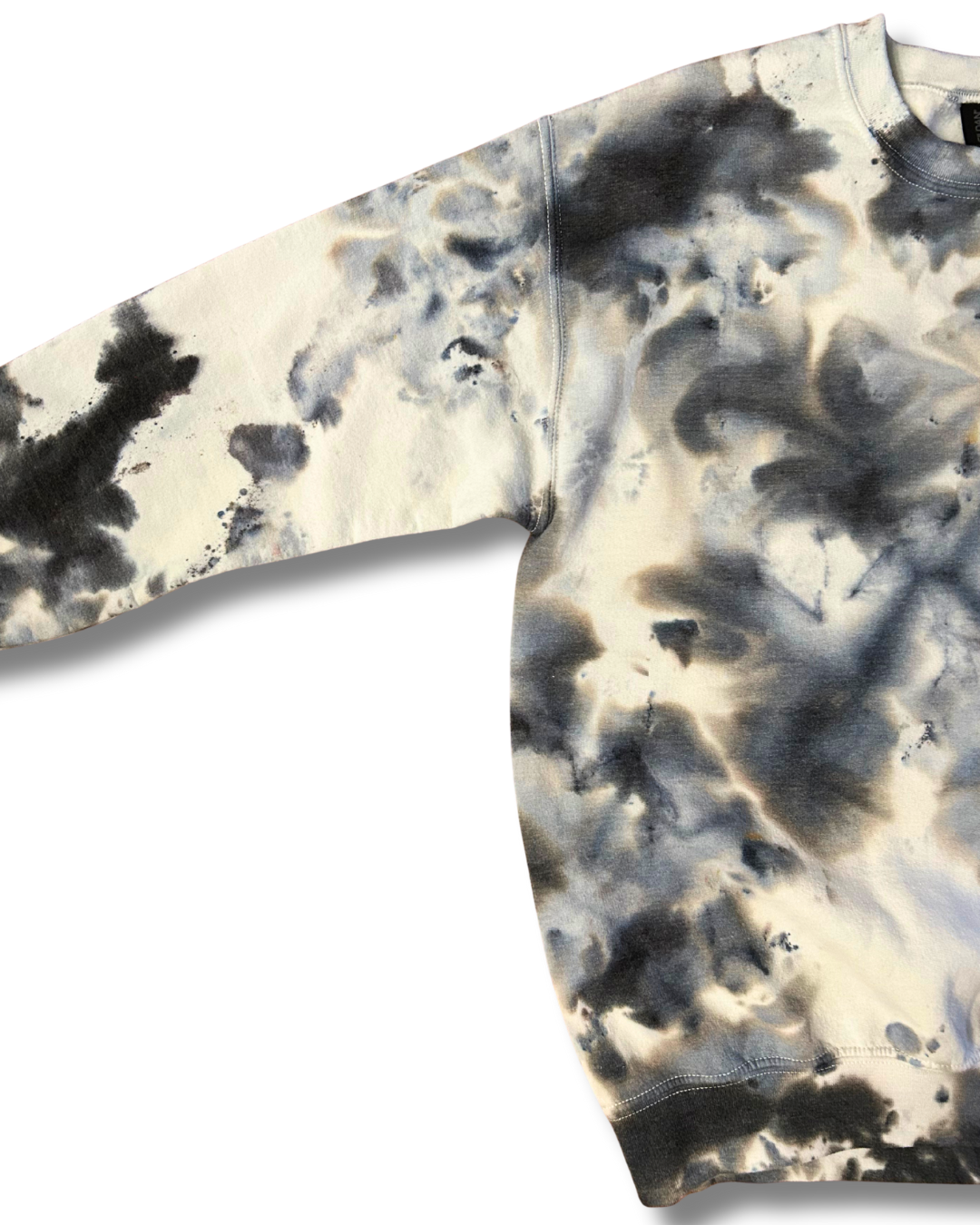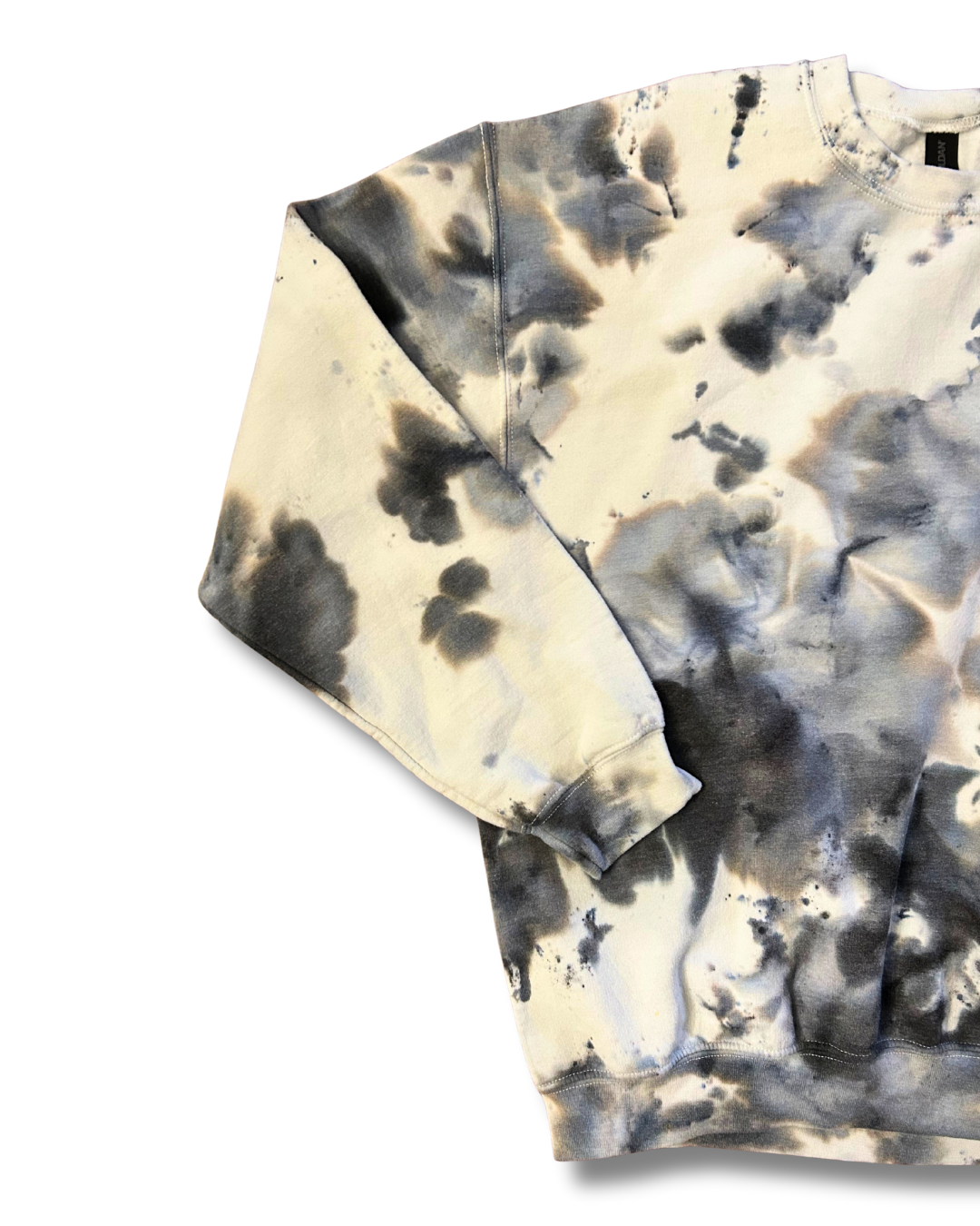 The Black Dog Ice Dye Crew is a a one-of-a-kind, hand-dyed sweatshirt in beautiful black white and gray tones- neutral but NEVER boring.
