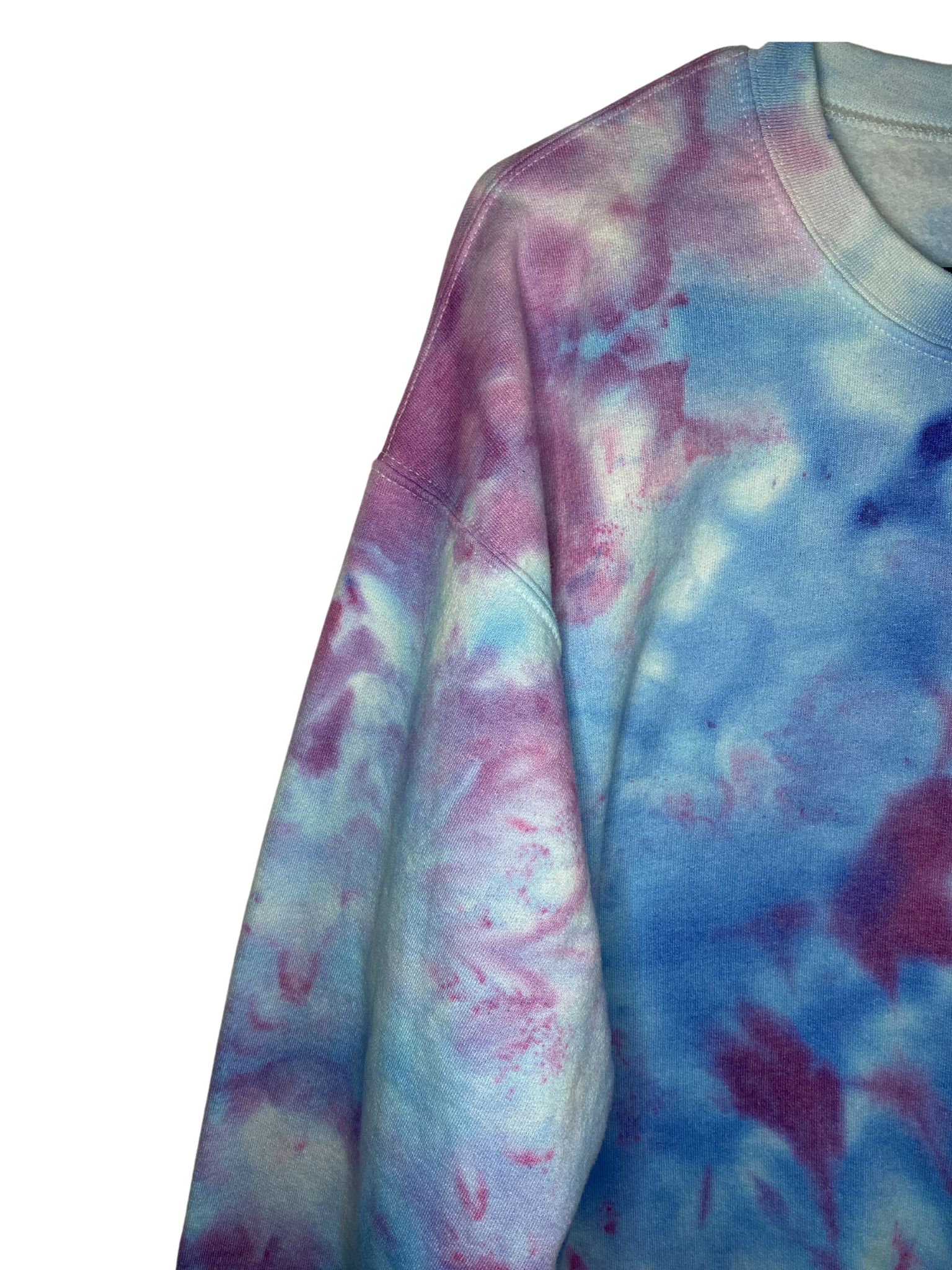 The Wildest Dreams Ice Dye Crew is a dreamy blend of purples and blues.